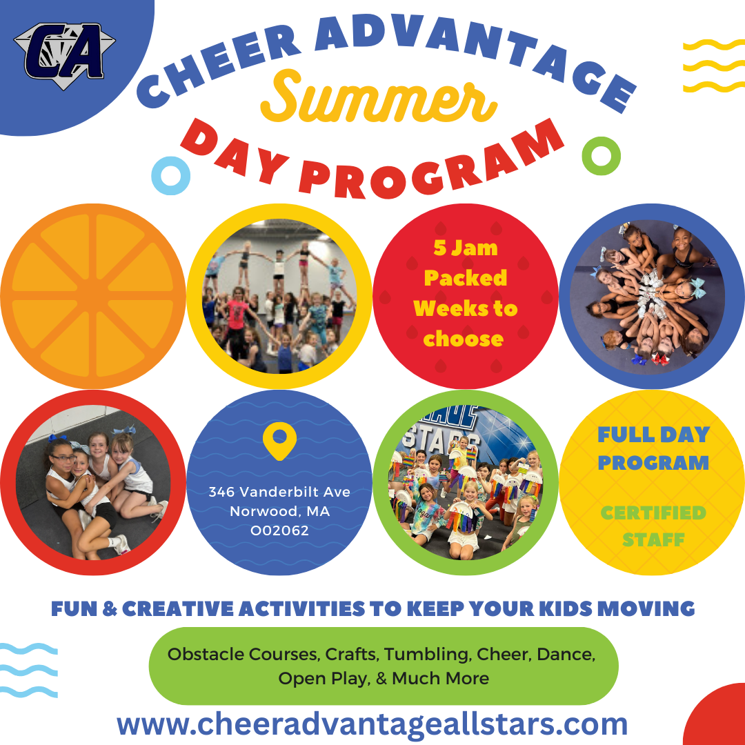 Cheer Advantage’s Summer Day Program is a full-day, high-energy experience designed to keep kids active, engaged, and having fun all summer long. Each jam-packed week includes cheerleading, tumbling, dance, obstacle courses, open play, crafts, and creative group activities—plus fun weekly themes to keep every week fresh and exciting. Athletes will build skills, confidence, and friendships...